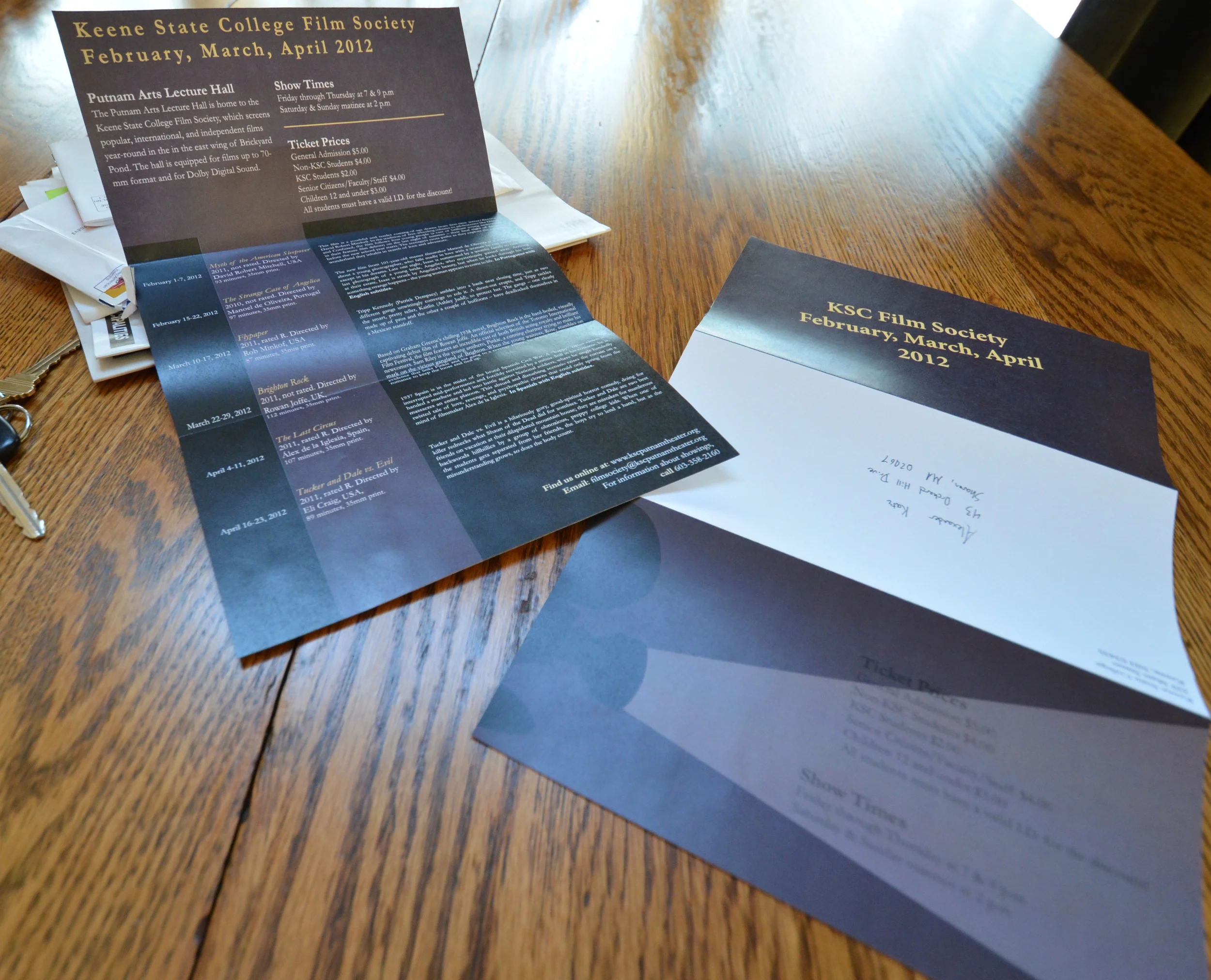 An experiment in typography and layout, this flyer was designed for the Winter/Spring Keene State Film Society season. All text was taken from the original posting on the Film Society’s website.