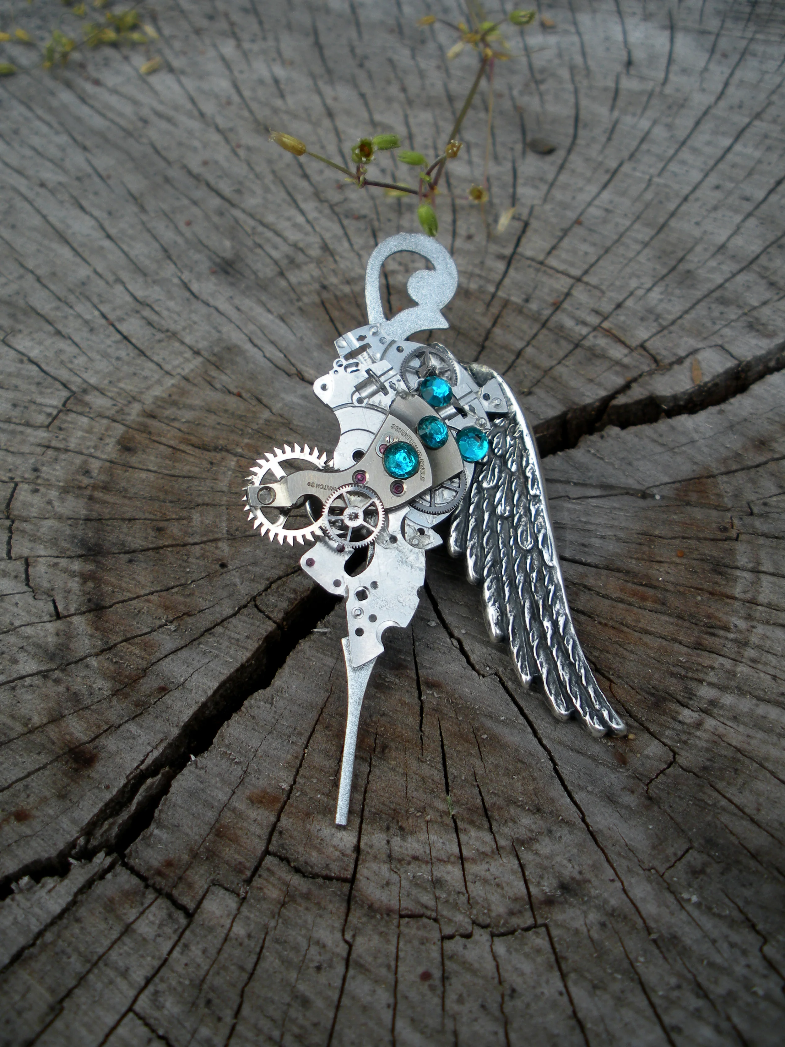 The first in a unique series of brooches created with a combination of pocket watch parts and findings.